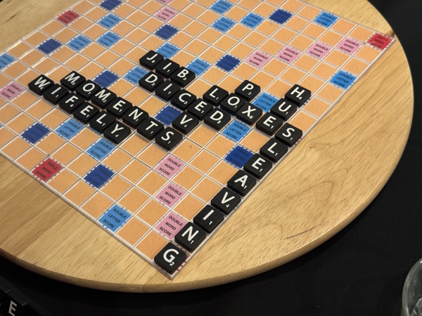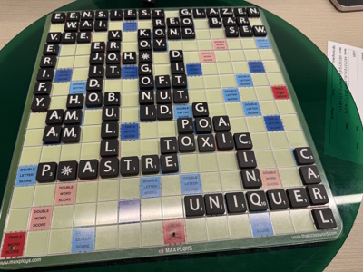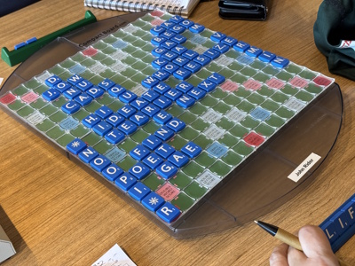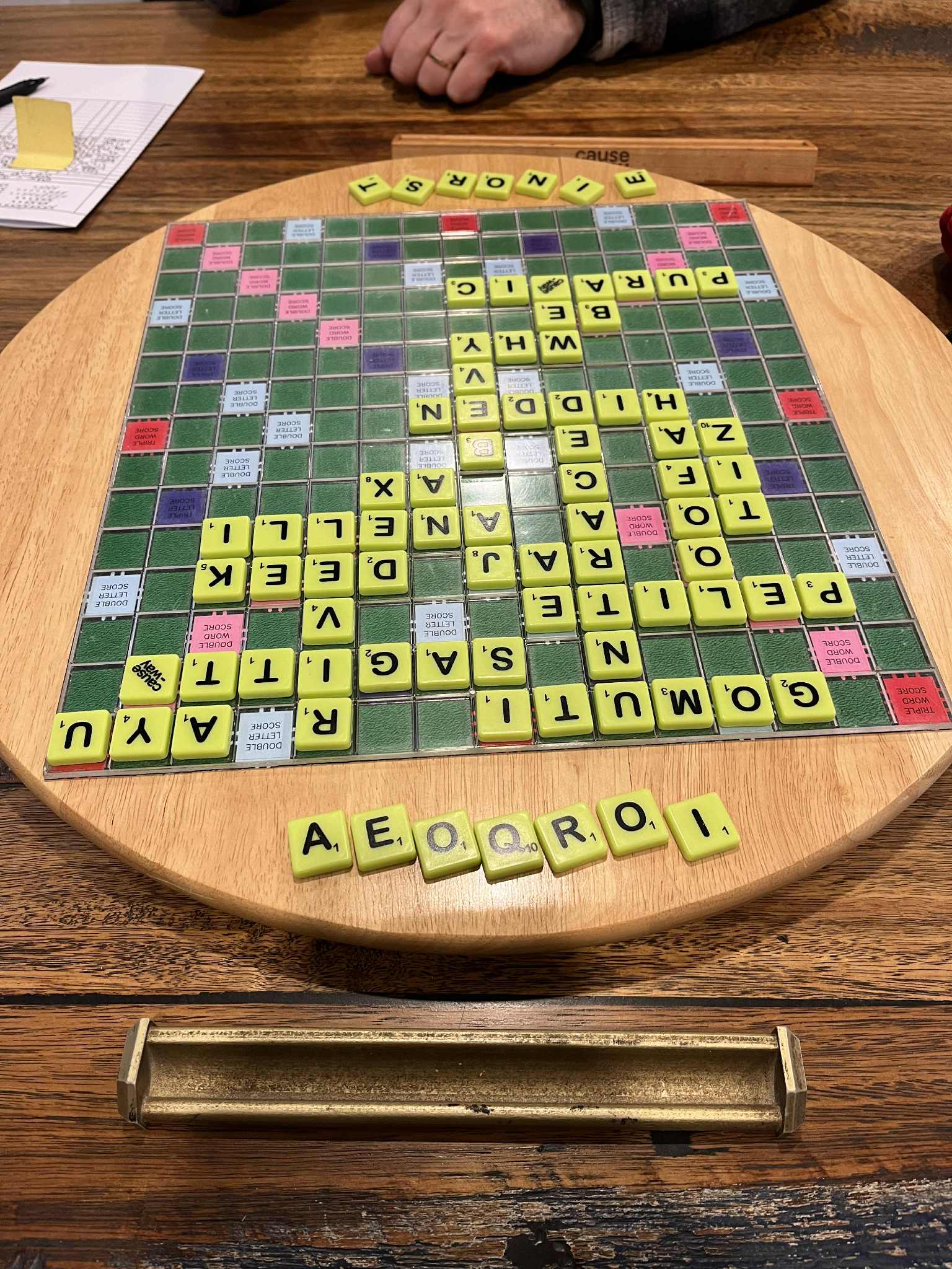 Rob takes out the monthly prize!Our playing arenaLetters do not always go your way!Come for the food, stay for the Scrabble
