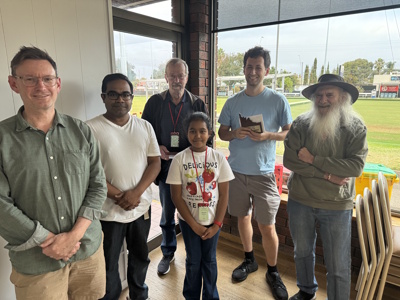 David wins the Championship and Olga (Qld) wins the PlateJithuni was awarded Best Youth Player in the PlateOur Prize winners: (L-R) Trevor (3rd), Naween (5th), Frank (3rd in Plate), David (Champion), Geoff (Joint High Word). In front, Jithuni as Best Youth Plate Player
