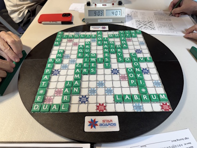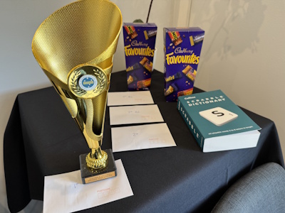 We returned to Mordy HQ for the first time in 2025 for the latest edition of the Bayside Open – thank you to the 20 players who played our event. Prizes were awarded today for 1st place, 2nd place, Best Rating Gain, Runner-Up Rating Gain, 3rd Place Rating Gain, and High Word/Game. This format allows us to give multiple prizes out no matter how people performed on the day 😊