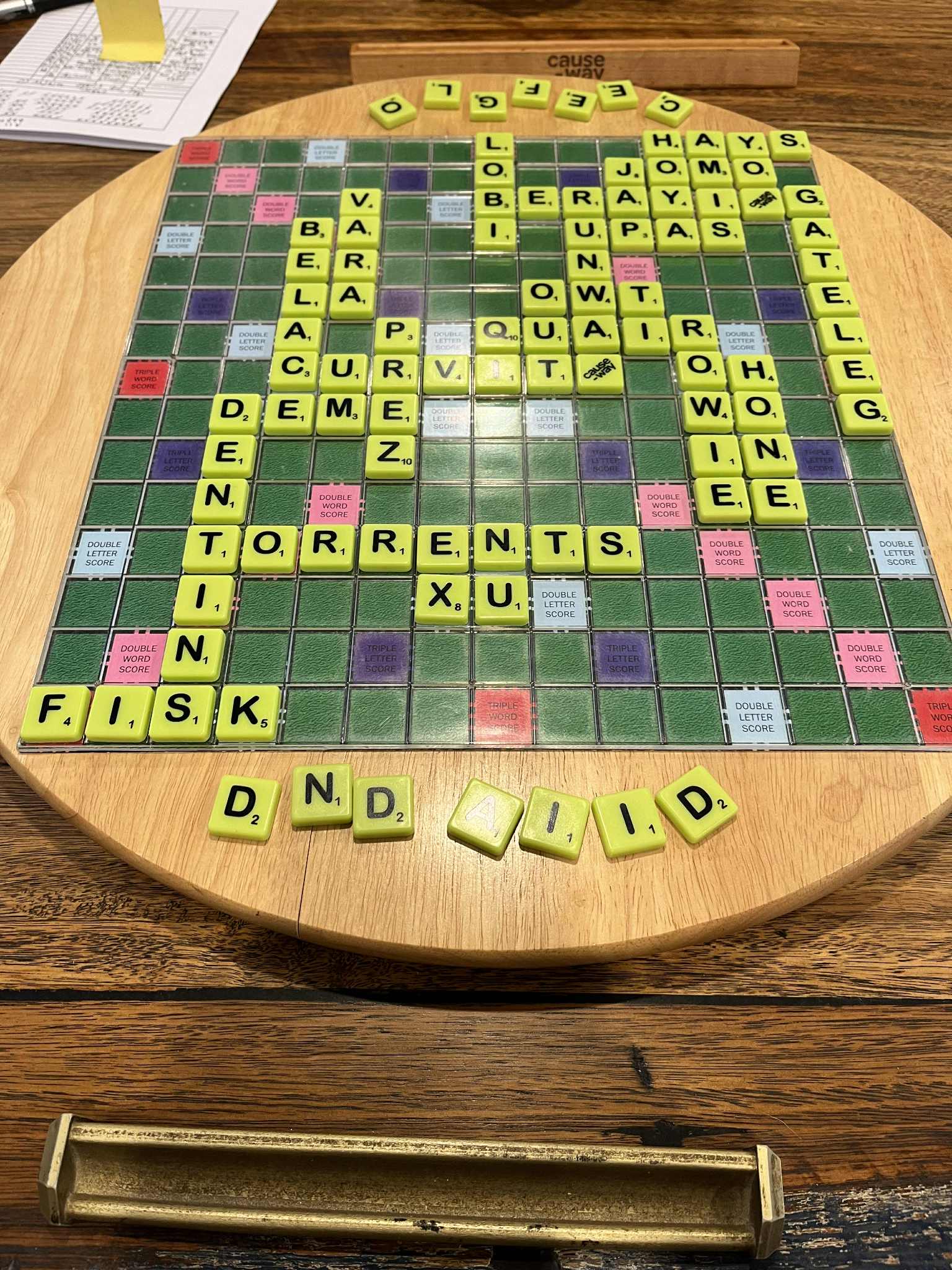 These evenings are a great way to end a week and a fun way to get some Scrabble in.