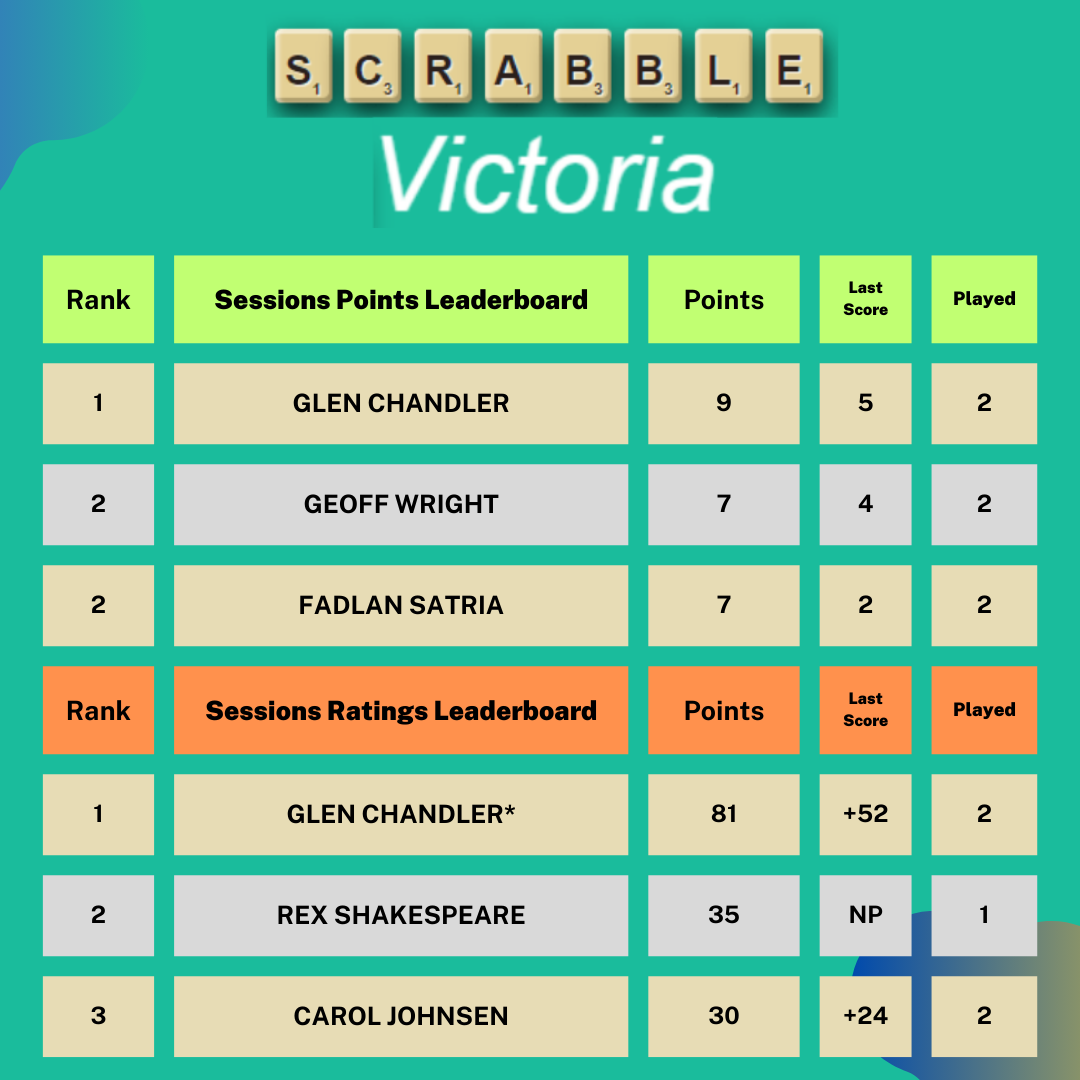 Congratulations to Edward Okulicz for winning the last Victorian Scrabble event for 2025. Congratulations also to Trevor (2nd), David (3rd), and Fadlan (4th). We celebrated four rating band winners (Karen, Bobby, Mardi, and Paula) whilst novelty prizes were offered for the three highest scoring words which start with a letter in the word DECATHON.